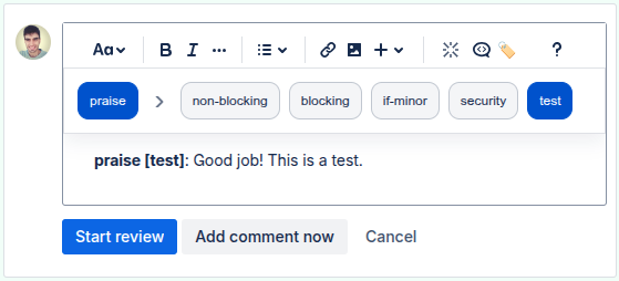 A lightweight browser extension that adds tags and decorations in the style of Conventional Comments directly in Pull Request comment editors. Support Bitbucket Cloud.